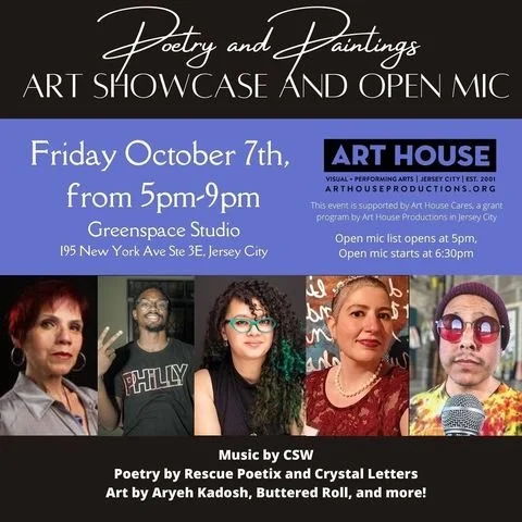 Poetry and Paintings NJ and Co-Collaborator Crystal Letters is pleased to present its lineup for Poetry and Paintings Open Mic at Greenspace Studios.Poetry and Paintings NJ and Co Collaborator Crystal Letters is pleased to present its lineup for Poetry and Paintings Open Mic at Greenspace Studios.